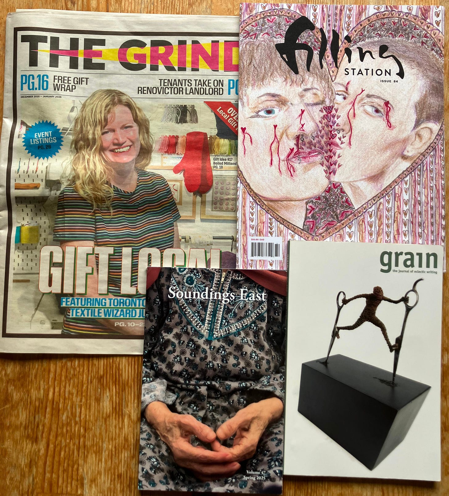 I’m grateful, as well, to the places that published my work this past year. I riffed off Jorge Luis Borges to speak about the soullessness of GenAI creations in “AI, Author of the Quixote,” which appeared in filling Station. Grain published my short story “Friendship Hiatus,” about a woman on a mushroom trip contemplating how her relationship with her best friend follows the phases of the moon. And “Milk and Milk Substitutes,” which features a series of sightings of odd pets, from pigeon to rat to squirrel, found a home in Soundings East. In all, three short stories and a book-recommendation trio, kind of a banner year for me.